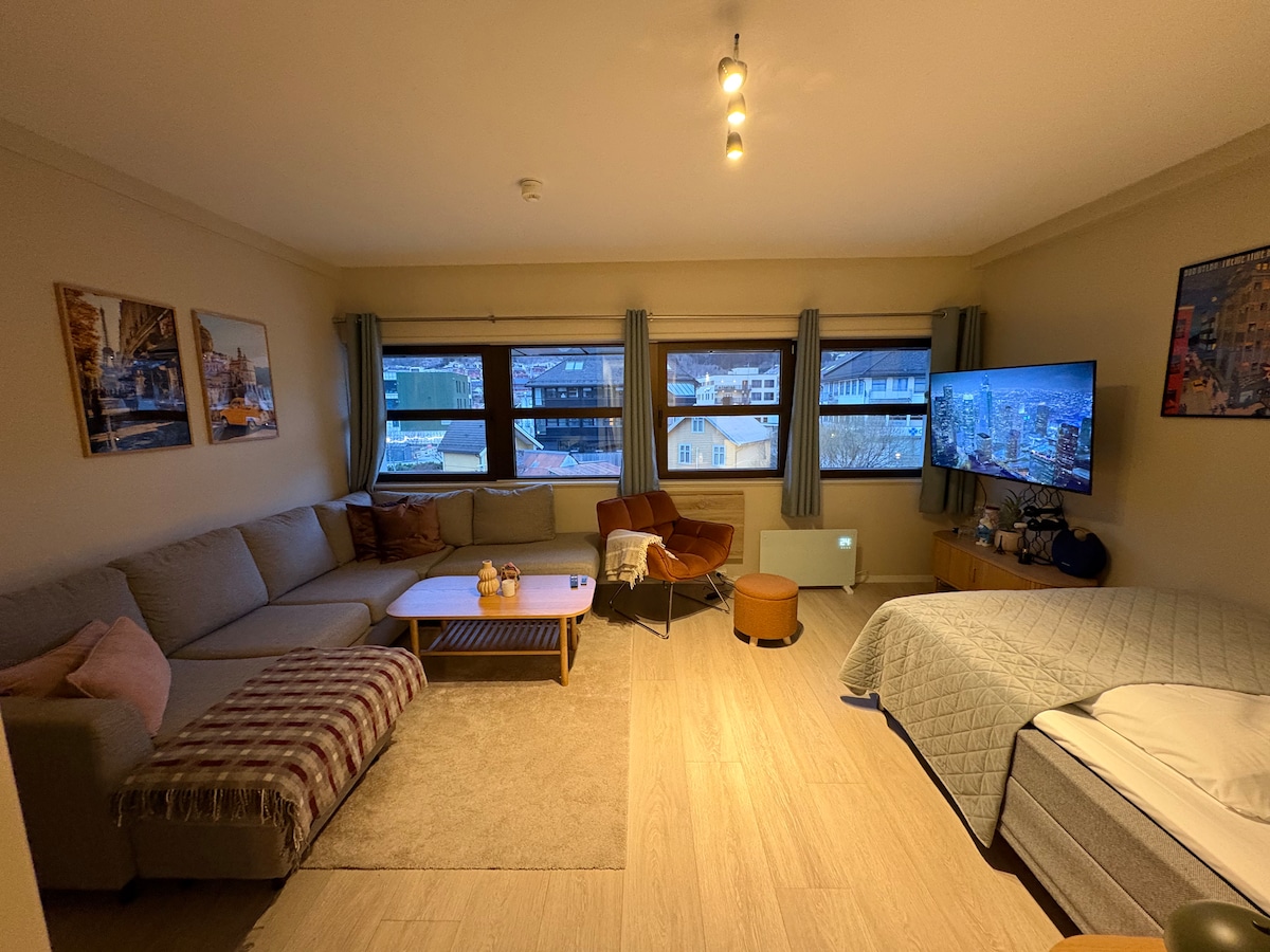 Studio apartment in the center of Sogndal, short distance to most places, such as shops, restaurants, bus station and ferry dock. Roof terrace where you can enjoy the view. Linen and towels are included. Parking for a fee between 8 am - 5 pm (free after 5 pm). Parking is right outside the apartment building. On Sundays there is free parking.