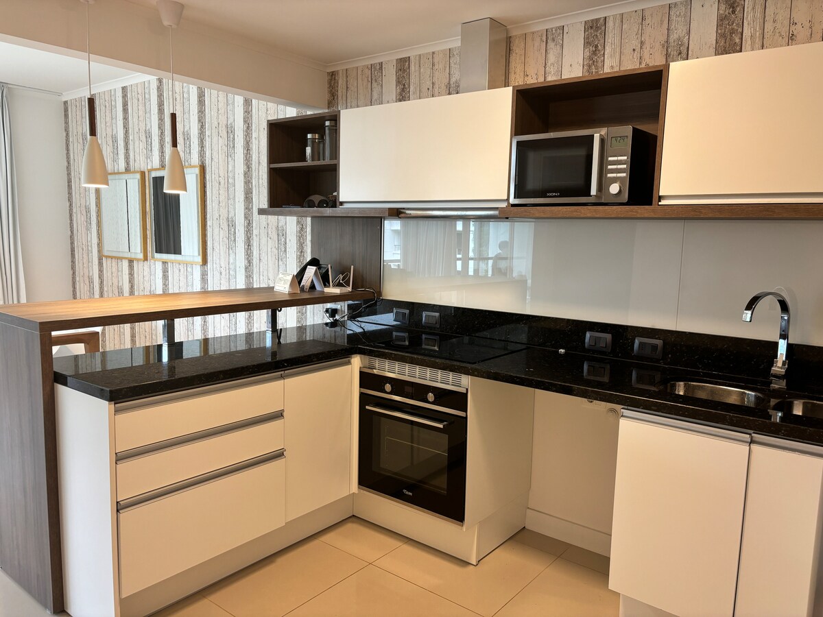Moderno apartamento para 2 personas totalmente equipado con espectacular vista al mar y la península con 2 balcones, situado a cuadras del centro y de las playas mansa & brava. Incluye el uso de cochera propia, amenities de alta categoría como piscina interna y externa, sauna, gimnasio, business lounge y recepción atendida 24h. Ideal para relajarse y disfrutar de Punta del Este durante todo el año o combinar descanso y trabajo ya que dispone de una conexión rápida de internet (200 Mbps).