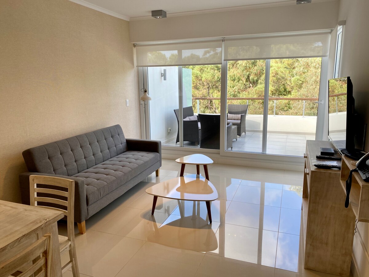 One-bedroom apartment a few meters from Playa Mansa and in front of the Hotel Enjoy. Very bright, with a nice view of Playa Mansa and all the amenities. Wi-Fi, cable TV, daily maid service. Own garage and laundry room. Very nicely decorated and fully equipped. TVs and air conditioning in both rooms. The building has 24-hour security and quality amenities: an outdoor heated pool, gym, sauna, and a barbecue with a large terrace overlooking the bay. Next to Gorlero