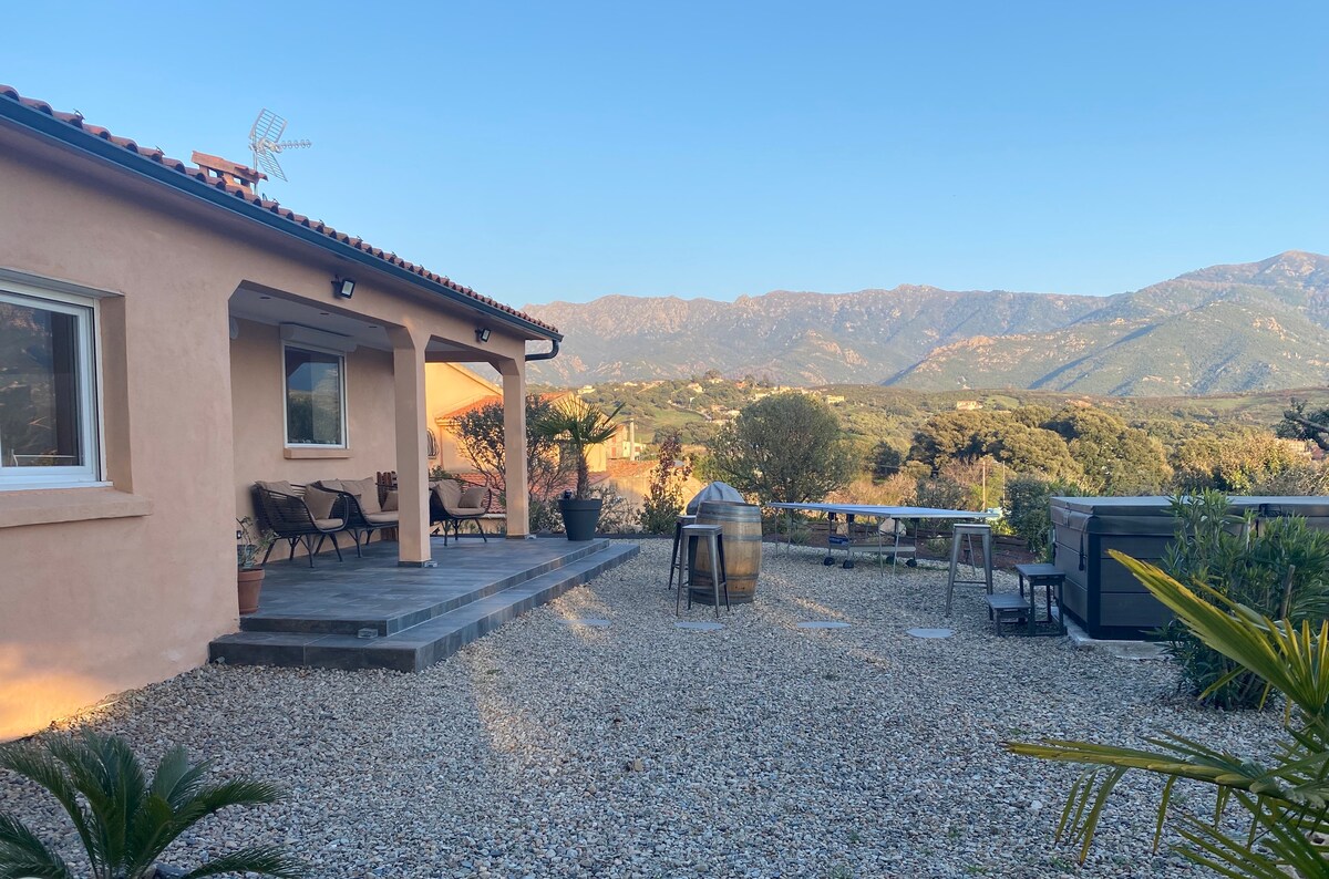 20 m2 cottage with stunning mountain views in a small Corsican village in Ocana. This is a great place to rest in peace, hike or take a bath in Lake Tolla with its nautical base. The cottage has a kitchenette, a new 140 cm sofa bed as well as a dining area, TV, Wi-Fi and air conditioning you also have a bathroom and toilet. To relax, you have a shaded terrace without neighbors with mountain views.