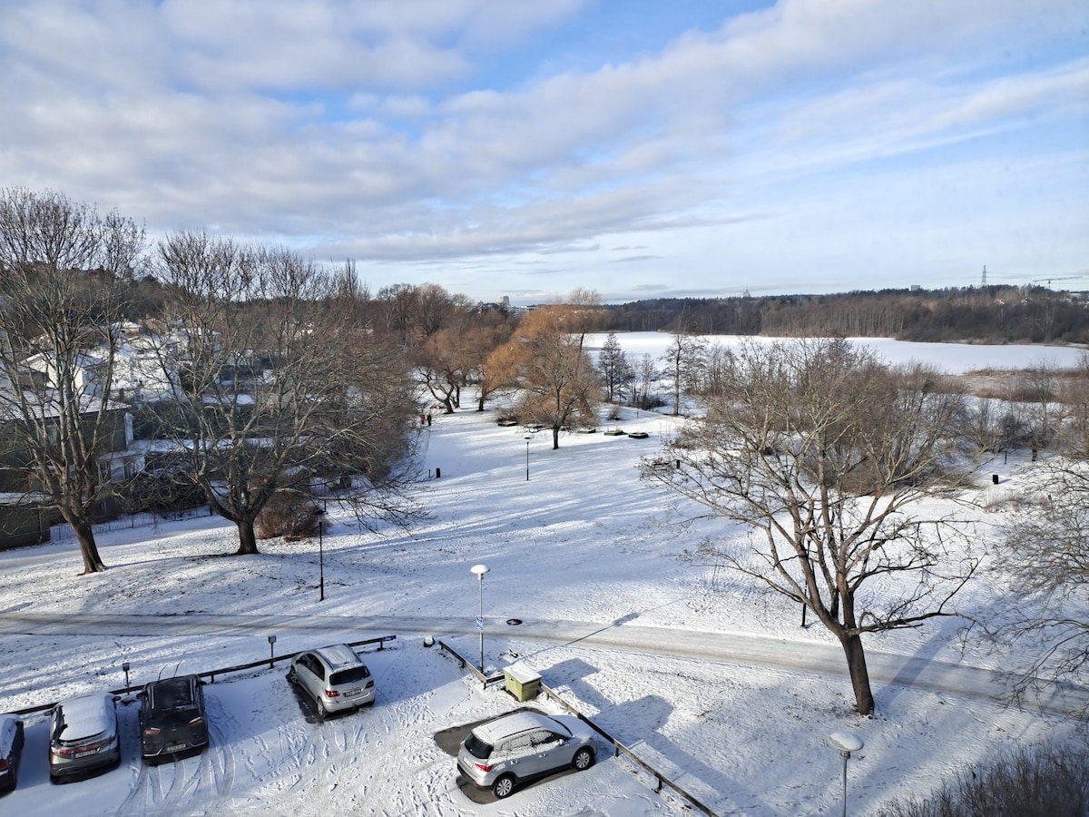 Stay by the water in stunning Hagaparken, just minutes from central Stockholm. This unique lakeside home offers direct access to a private dock, small beach, and a relaxing sauna. Wake up to birdsong, take a morning jog through beautiful Hagaparken, or enjoy quiet evenings by the water. With Mall of Scandinavia, cozy cafés, and Stockholm city within minutes, you’ll have the best of both nature and urban life. The house offers comfort, high-quality style, and an absolutely unbeatable location.