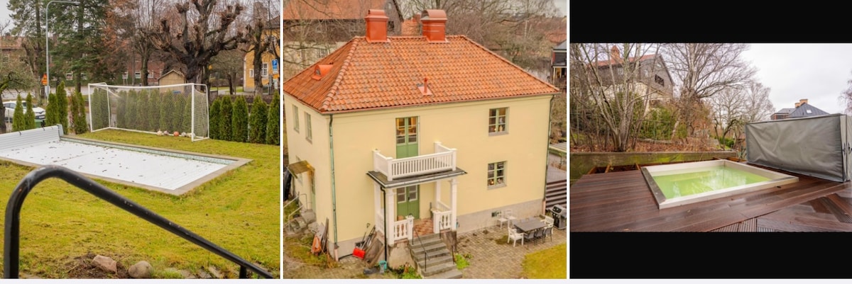 Nice and spacey Villa near two lakes with big garden, private pickelball-court, fitness room and Sauna. Walking distance to northern Europes biggest shopping mall Mall Of Scandinavia (MoS) and Strawberry Arena with great shopping, imax theatre, restaurants and lots of other activites. The house is beautifully located near recreational areas, public transportation (both Metro and Commuter trains) and only ten minutes by car to central Stockholm.