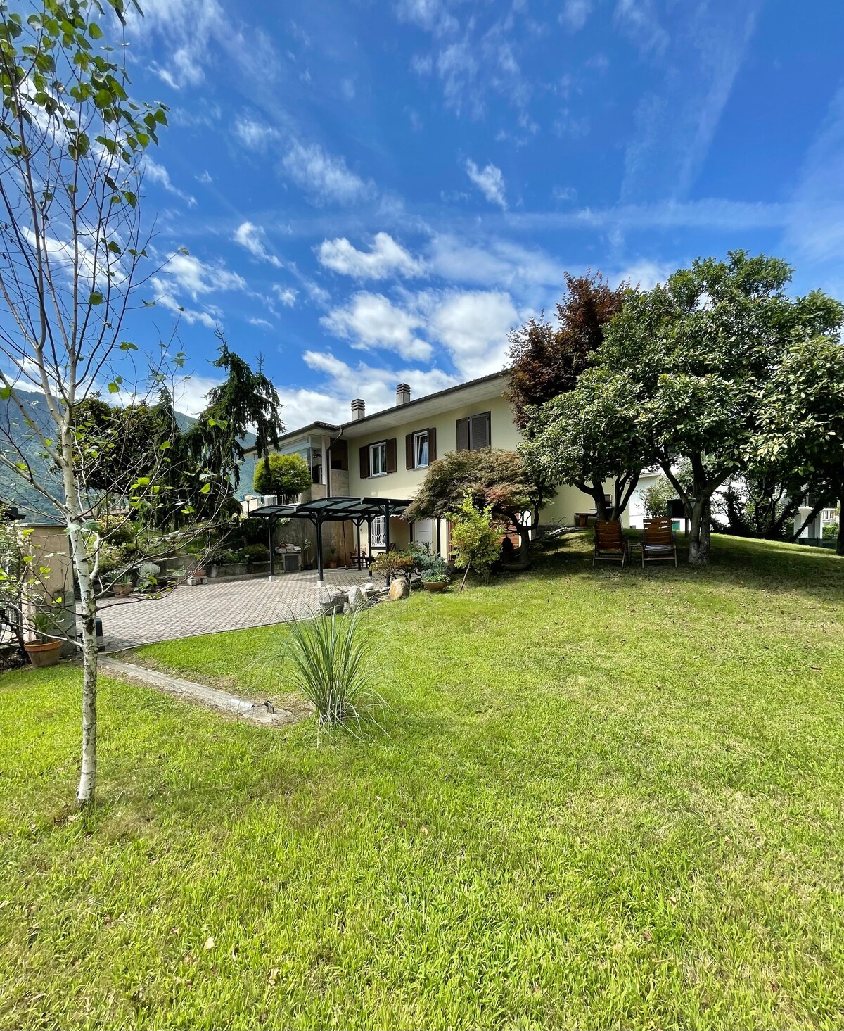 Appartamento bilocale di 60 mq. piano terra in casa singola, senza gradini. Entrata autonoma e giardino privato, possibile usare le sdraio. Accesso con auto e parcheggio privato coperto di fronte all'entrata, TV satellitare, wi-fi, cucina completa,piano cottura,bollitore,frigorifero,forno,lavastoviglie,toaster. Spazio esterno con sedie, tavolino, ombrellone. Uso lavatrice €5. Piste da sci: Madesimo 40 minuti, St.Moritz 60 minuti Lago di Como 15 minuti Chiavenna 5 minuti CIN: IT014057C2MGOQV84W