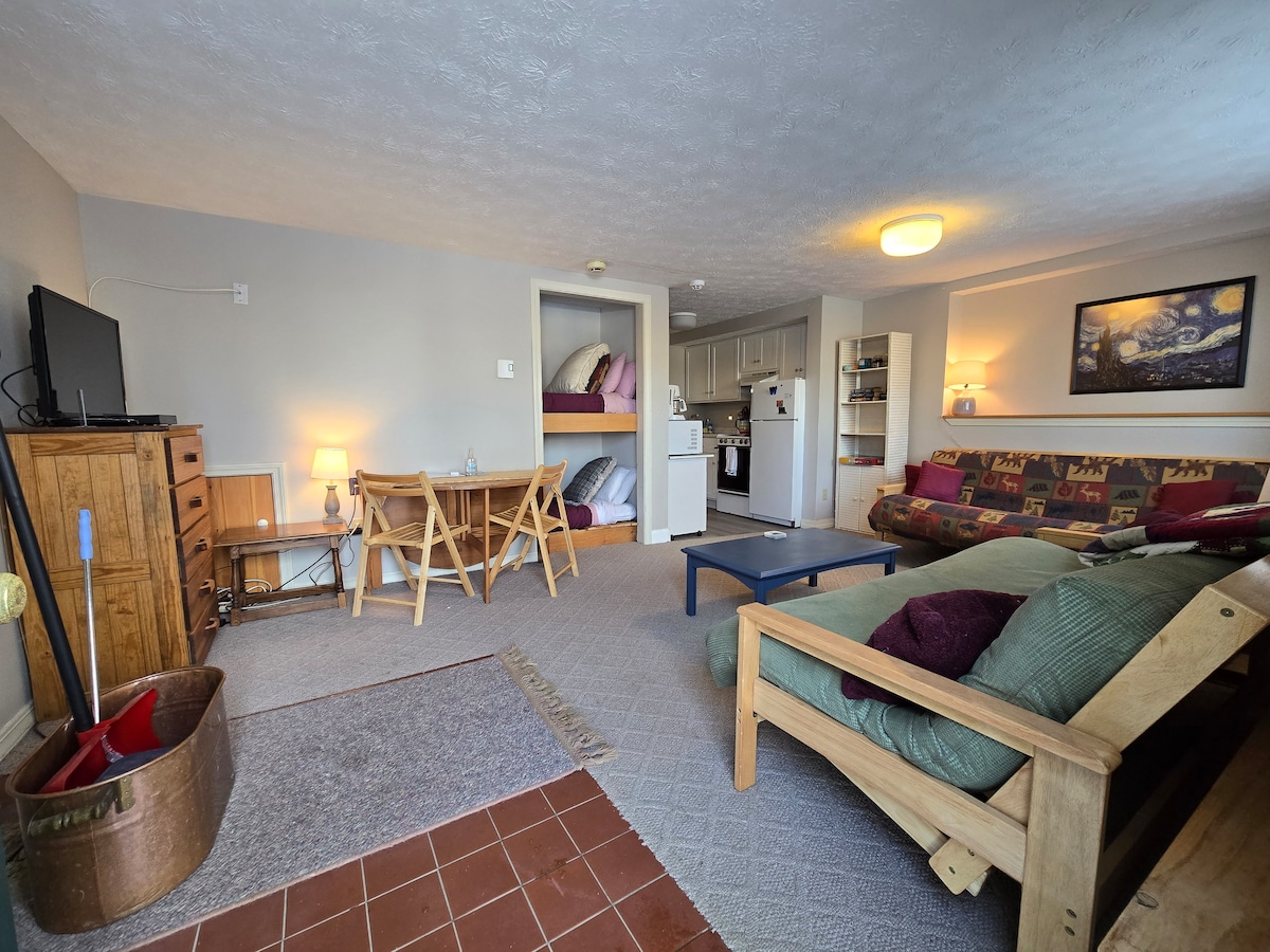This cozy condo is ideally situated in the heart of Sugarloaf, providing direct access to the slopes right from your doorstep, as well as being conveniently located on the shuttle route. You can park your car and enjoy the convenience of not needing to drive again! The one-bedroom unit features a king-sized bed and a pull-out sofa bed, comfortably accommodating guests. It includes a full bathroom and an open-concept kitchen and living area, making it perfect for entertaining!