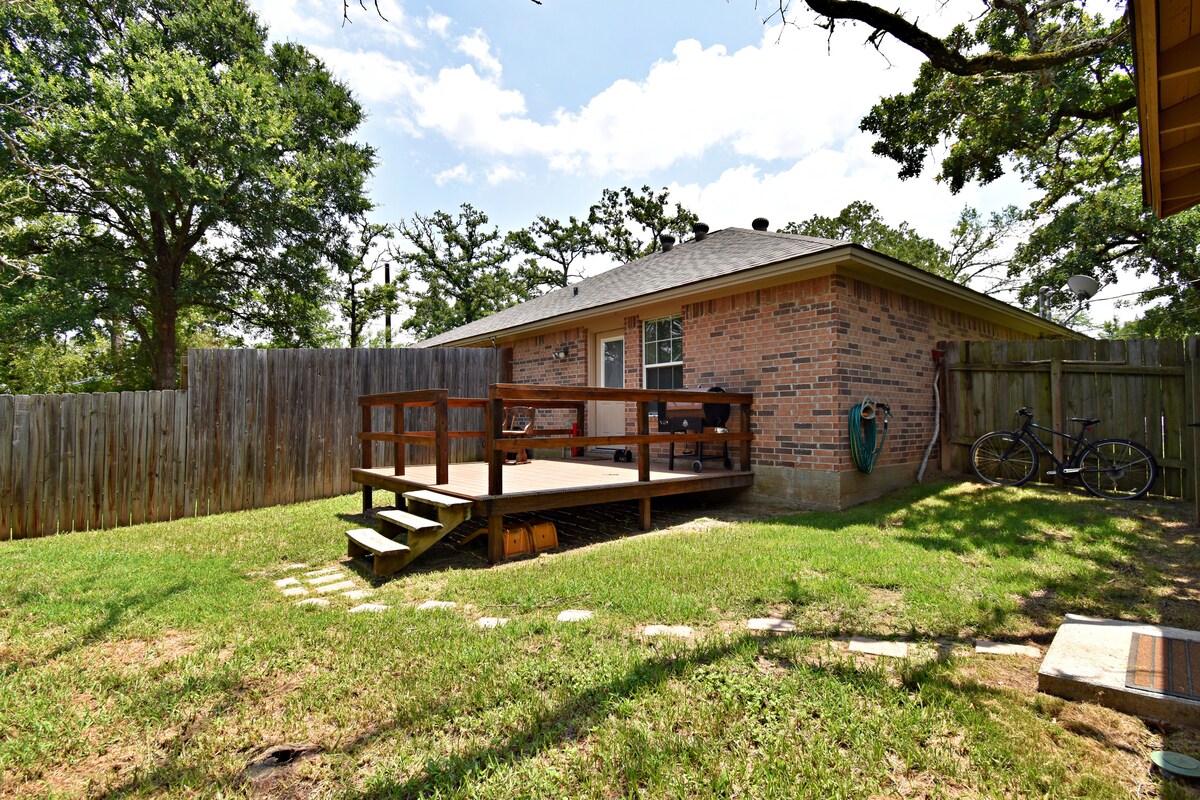 Enjoy our captivating two bedroom, two bathroom house off the beaten path. This peaceful haven is just 10 minutes from Texas A&M. Enjoy College Station with your friends and family or spend your getaway surrounded only by the big Texas sky. However you choose to travel, we hope you enjoy your stay in Aggieland. Enjoy the charcoal grill on the back porch, and firepit in the back yard! Coffee K-cups are always on the house, as well as a single courtesy bottle of wine!