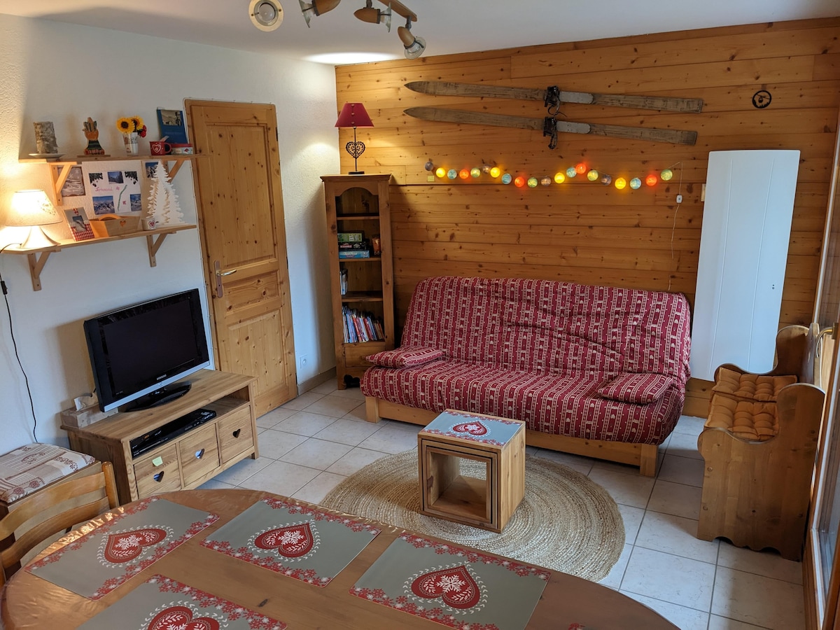 Fully equipped studio in Praz de Lys. It has a sofa bed and a folding bed for possibly a 3rd person (child). Guests can take advantage of the large, very quiet balcony to admire the view of the nearby mountains. The apartment is located close to shops (restaurants, shops, ski school...) and the tourist office which can advise you on the many activities offered (hiking, cycling... summer and ski resort in winter). Cleaning to be done before checkout