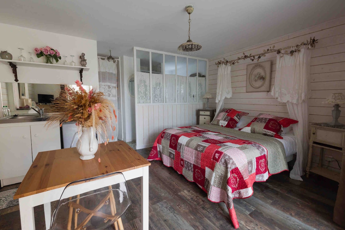 Chambre en baie is a romantic studio on one level, which is located in a peaceful village between Abbeville and Saint-Valery-sur-Somme. It is an ideal base for a romantic getaway in the Bay of Somme. Breakfast is included in the room rate. The wifi and parking are free. Possibility of eating in the studio or in the garden. The sauna is extra charge.