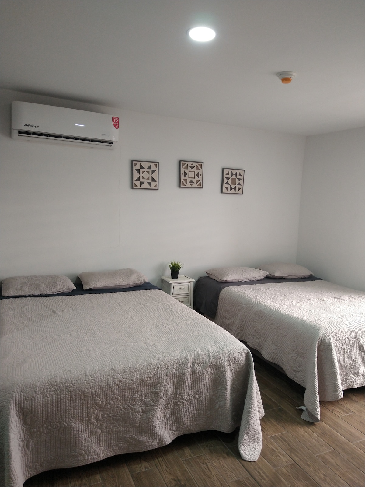 The room has minimalist decoration. The area is very spacious and the beds are very comfortable. We have public parking. We are 5 minutes by car from the international line ( Mexico USA ), a 5-minute walk from the Municipal Palace and State offices. A few meters away are the Oxxo VIP Coppel Elektra stores, Central Bus Station and Police Station Downtown Area. The city's most important hospital social rooms are relatively close.