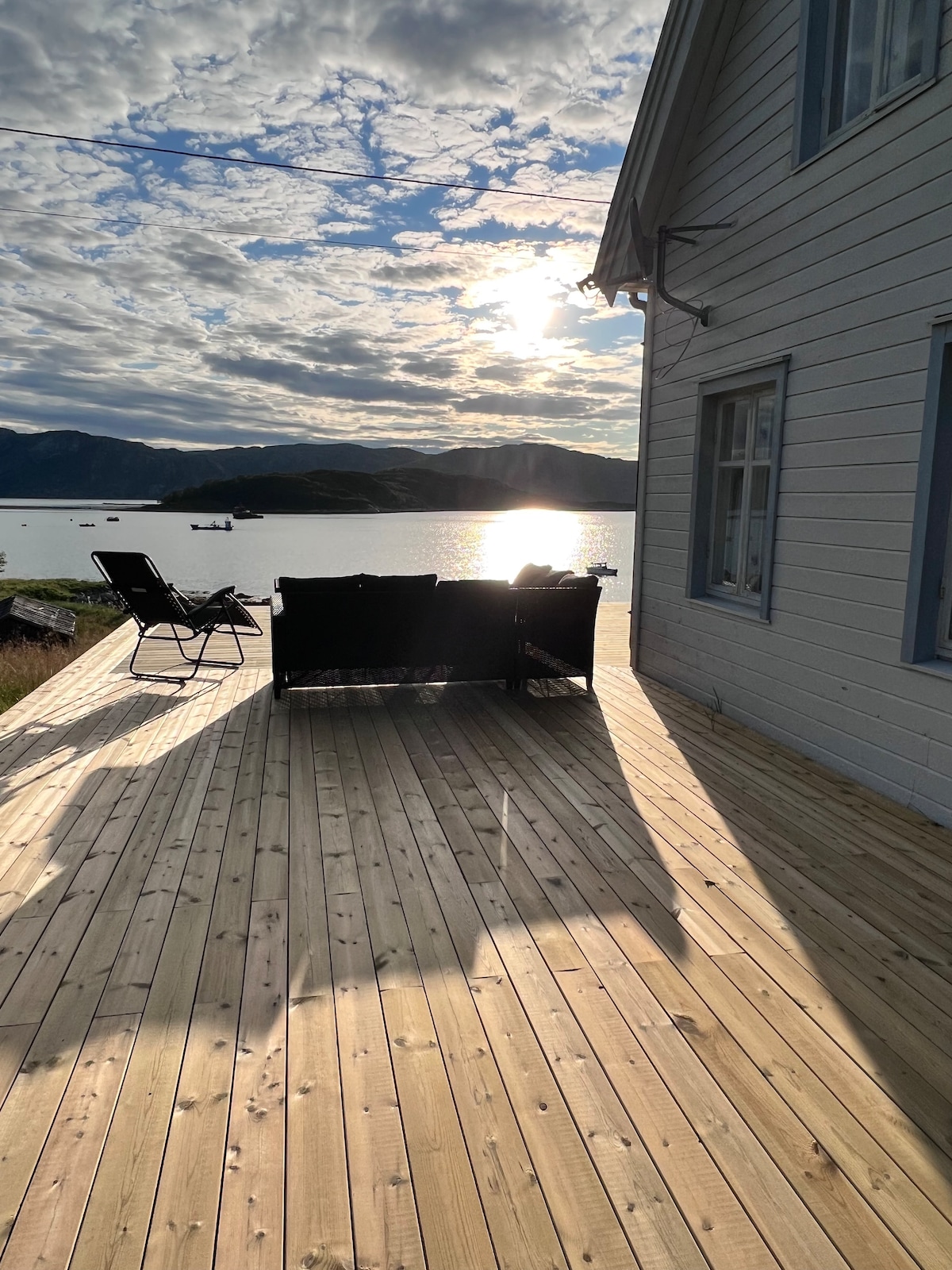 Recharge your batteries at this unique and quiet accommodation located at the end of Jarfjorden. The house is located right by the fjord with a large terrace with a lovely view, and on good days, sun from morning to evening. From here you can enjoy the sunset and the bustling wildlife. The house has charming crooked doors and floors, solid old timber walls and cozy furniture, washing machine, dryer, stove, shower and fireplace. Right below the house there is a small boat with a motor for rent. Short distance to Snaufjellet