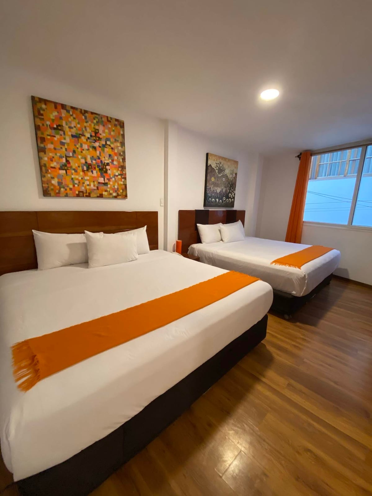The room, HAS ONE TWO SEATER BED, and one single bed, hygienic amenities inside the room. Personal cleaning supplies: 3 towels, a roll of toilet paper, two soaps, two shampoo pads. (depending on the number of guests) It has a candlelight, a wall hanger, a table (70cm X 70cm) WITH TWO chairs, A doormat. IT HAS a vase with a copy of the local flowers, two paintings made by Cusqueño artists.