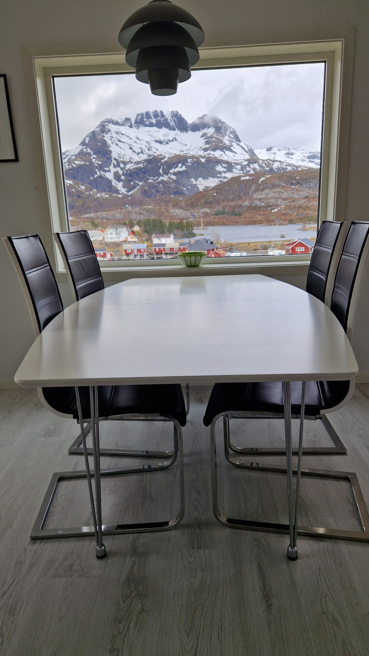 Enjoy your stay in Lofoten in a fishermans cabin with everything you need. The cabin is new, modern, and lays right by the ocean and mountains. The cabin is equipped with everything you need, with a large, fully equipped kitchen, four bedrooms, a living room with a beautiful view, 1,5 bathrooms with shower and washing machine, and a dining room with room for the whole family. Nice fireplace in the livingroom on the second floor.