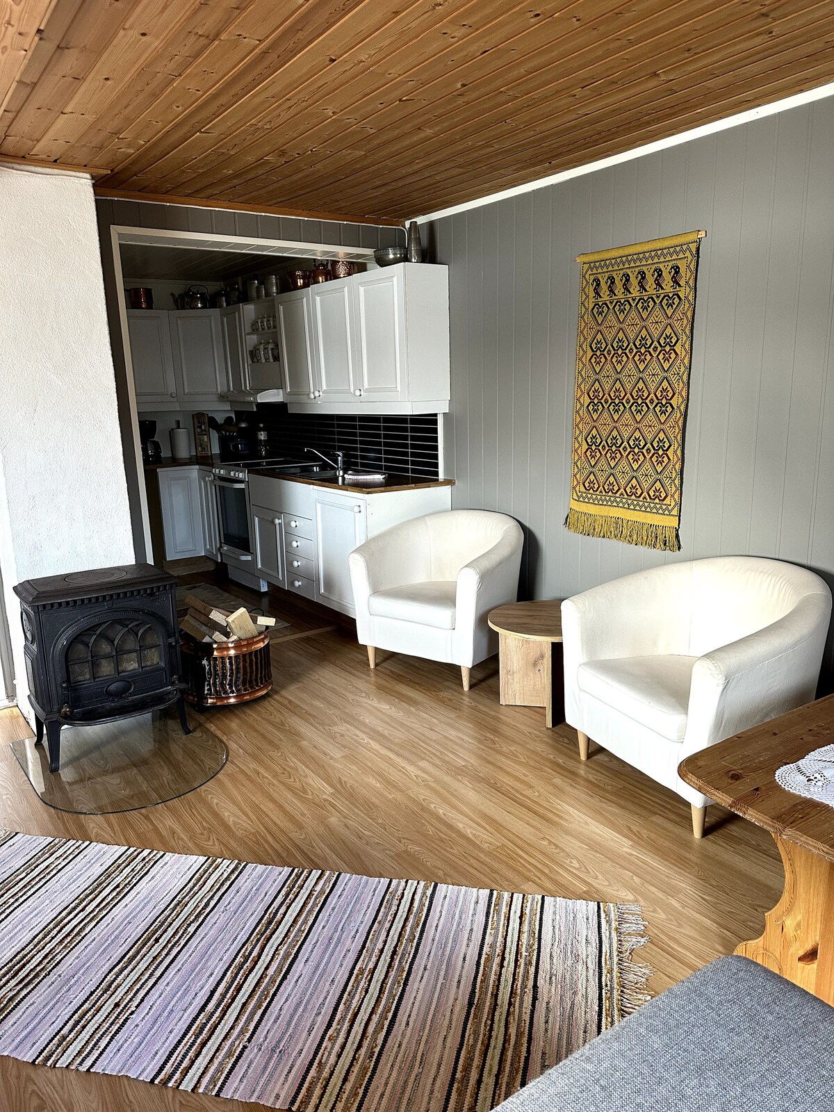 My boyfriend and I bought this modern fishing cabin in July 2018, as a holiday home. It is located right by the ocean front with great views. It is situated on two floors, 3 bedrooms with comfortable beds, 1.5 baths, well equipped kitchen and open plan living rooms with spectacular views. You will love our place because of the location, the view, and the tranquility. A warm welcome in an extraordinary setting awaits you.