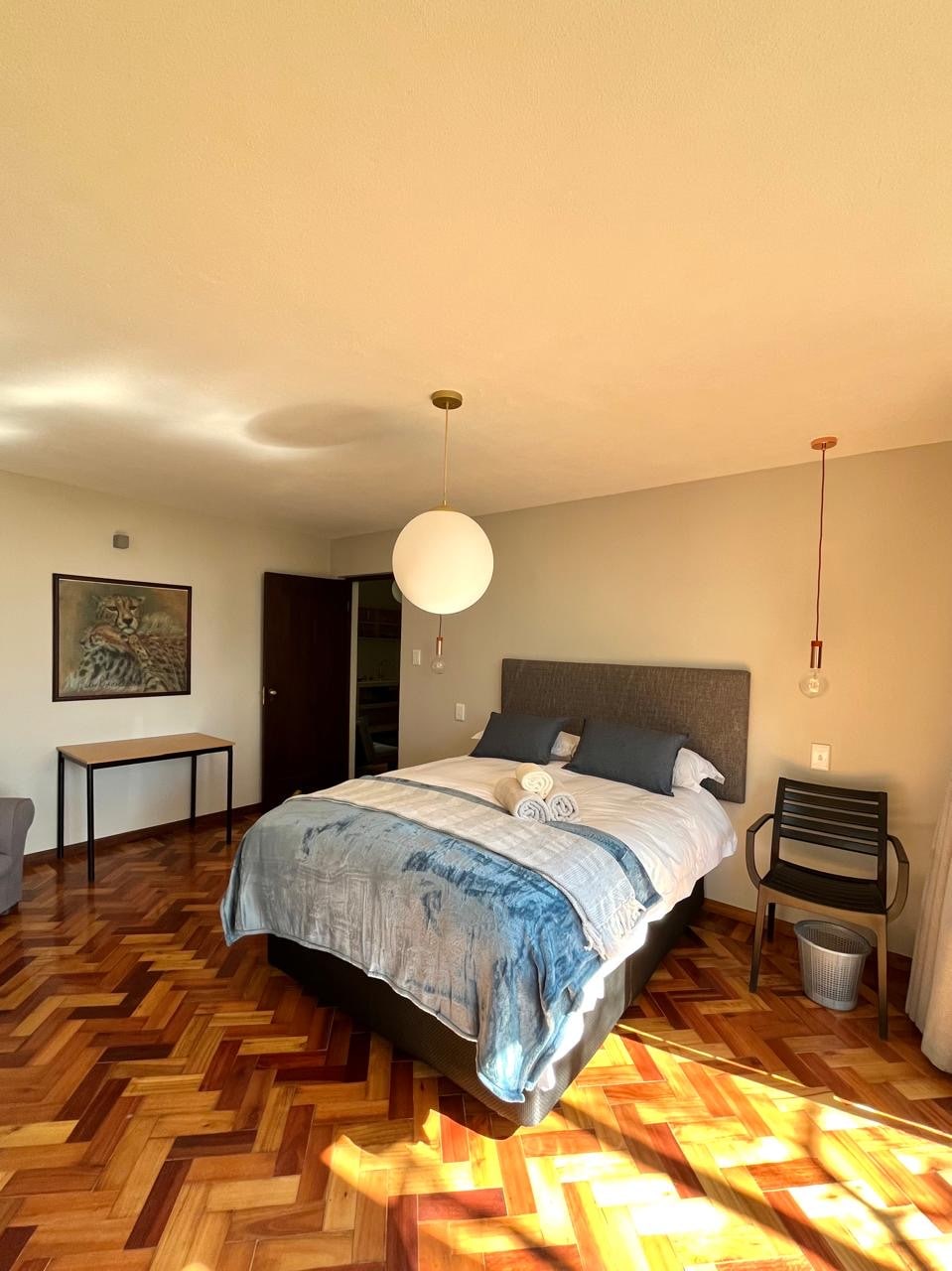 A beautiful, secured and conveniently located apartment near a number of heritage sites, educational and healthcare institutions, superb dining and entertainment options, great sporting facilities and attractions. This luxurious spacious en-suite one-bedroom apartment is stylish with modern finishes, consisting of well-equipped kitchen with kitchen utilities, queen-size bed, a flat screen Smart-TV with access to Netflix and Showmax, uncapped free Wi-Fi and BACK UP POWER during load shedding.