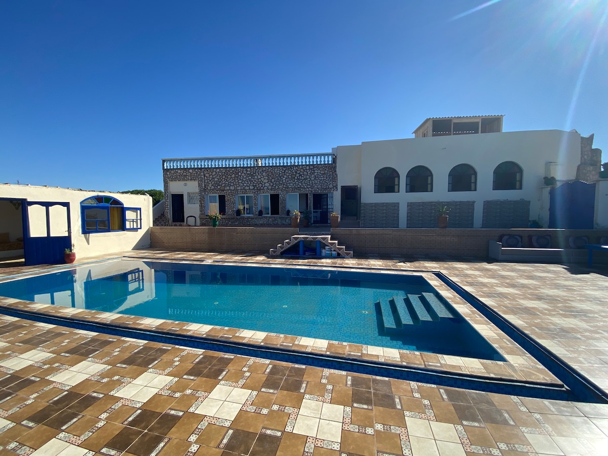 Located facing the ocean halfway between Essaouira and Asfi, recharge your batteries in our villa "L'Horizon Bleu" with family, as a couple or with friends. You'll enjoy amazing ocean views and stunning sunsets. Rare in this area: enjoy a large 100% PRIVATE & UNOPPOSED swimming pool (10 meters x 4) on a terrace with ocean views. Our caretaker, whose accommodation is independent of the villa, is there to welcome you and meet all your expectations.