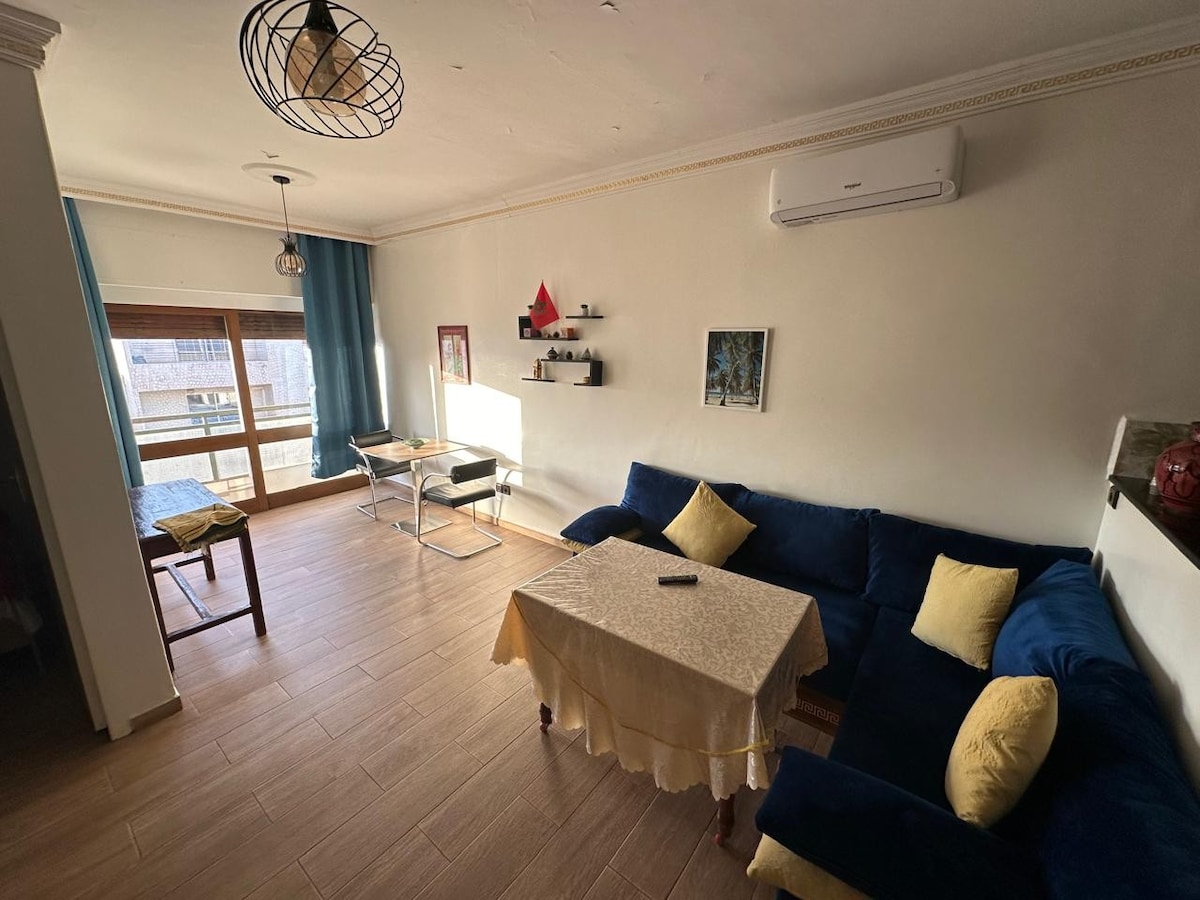Excellent, bright apartment in Agadir, host city of the 2025 Africa Cup of Nations, just a 2-minute walk from the bustling Souk Elhad bazaar, offering all the comforts needed for a pleasant stay. It includes: 2 bedrooms: one with a double bed and the other with two twin beds, a living room with IPTV and Wi-Fi, a dining room, a fully equipped kitchen, a bathroom with toilet, and a spacious terrace perfect for relaxing. The location is close to all amenities and the city center. 2km from the beach