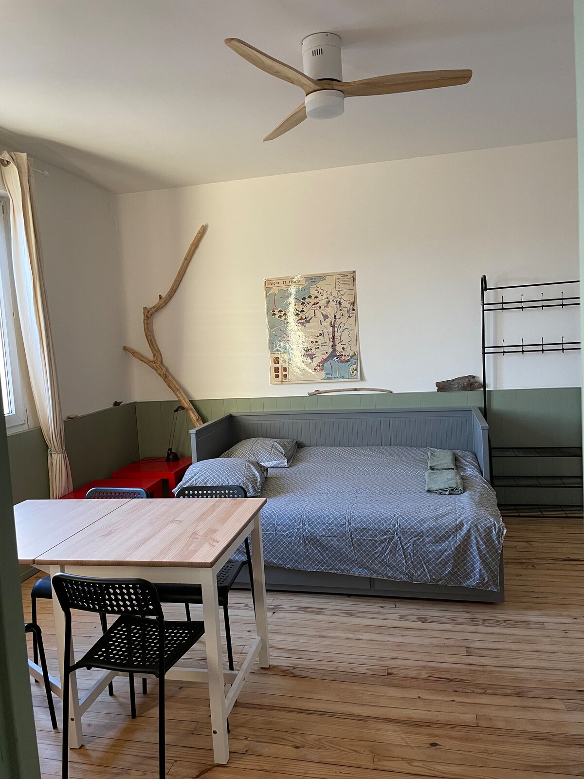 This *** tourist accommodation is a 7-minute walk from Naïades beach. Come and discover this quiet independent T3 accommodation facing the trees, and its private exterior. Enjoy the adjoining private shaded wood. In July and August, the ping pong table, badminton area and hammock are available. The city center is an 18-minute walk and 4-minute bike ride away. Welcome kit offered. Sheets and towels are provided. Beds made. Our dog friends are not allowed.
