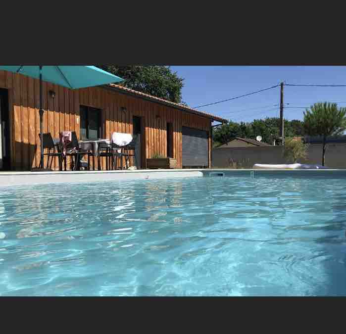 Maison de Vacances à Montalivet. (English speaking Host) Maison neuve pour 6 personnes située au calme à 1,2km de l'océan (environ 12 min à pieds). Entièrement équipée et aménagée, vous vous y sentirez comme chez vous! Composée de 3 chambres dont une suite parentale, 2 salles d'eau au total, 2 WC, une terrasse couverte avec barbecue/plancha/salon de jardin et table extérieure. Cuisine entièrement équipée (lave-vaisselle-four-induction-micro-ondes-lave linge- machine à café -grille pain etc)