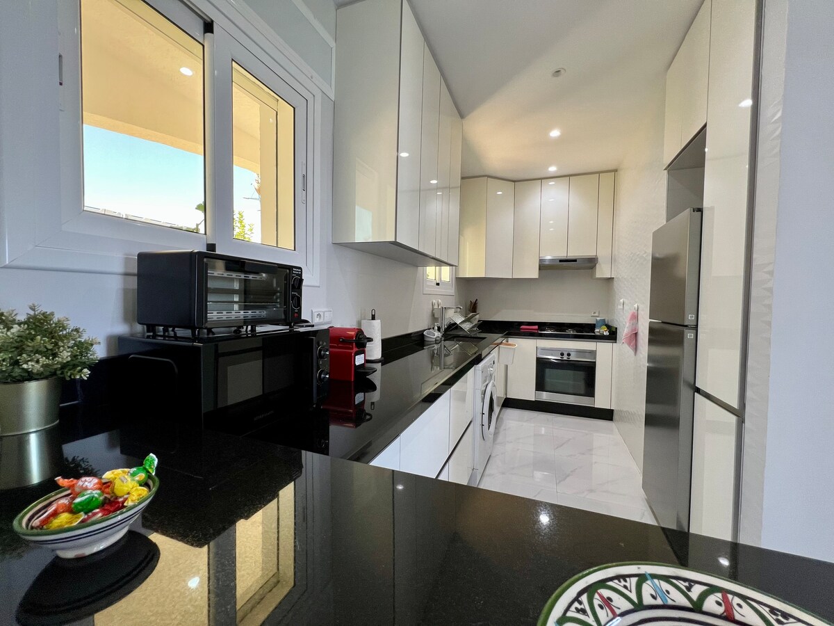 🏝🏖Welcome to your Mediterranean retreat! Brand new apartment with modern appliances and amenities (Private Swimming Pool, gated community, elevator) situated in the heart of Cabo Negro and close to Restinga and Marina Smir. At the Meditteranean Retreat, you will enjoy the proximity to Beautiful Beaches, the Unique culture of Tamuda Bay, and more importantly the ability to build long-lasting memories with your loved ones.