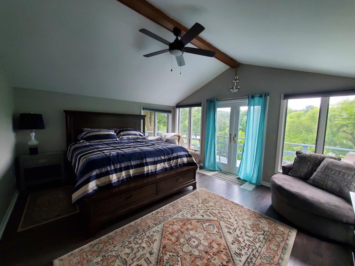 Privacy on 11 acres of conservancy-protected land including two lakes, river access, woods. Rowboat available. Fishing on site. Nature lovers dream! Minutes from Michigan’s most popular beach, breweries, wineries, antique malls, farm-to-table restaurants. Fully equipped kitchen, gas fireplace. Private fire pit, deck, and gas grill. Kayak, bike, hike nearby. Separated from our home by a breezeway. Private entrance, quiet road, dark nights. Daytime woodworking noise possible. Limit of 4 guests.