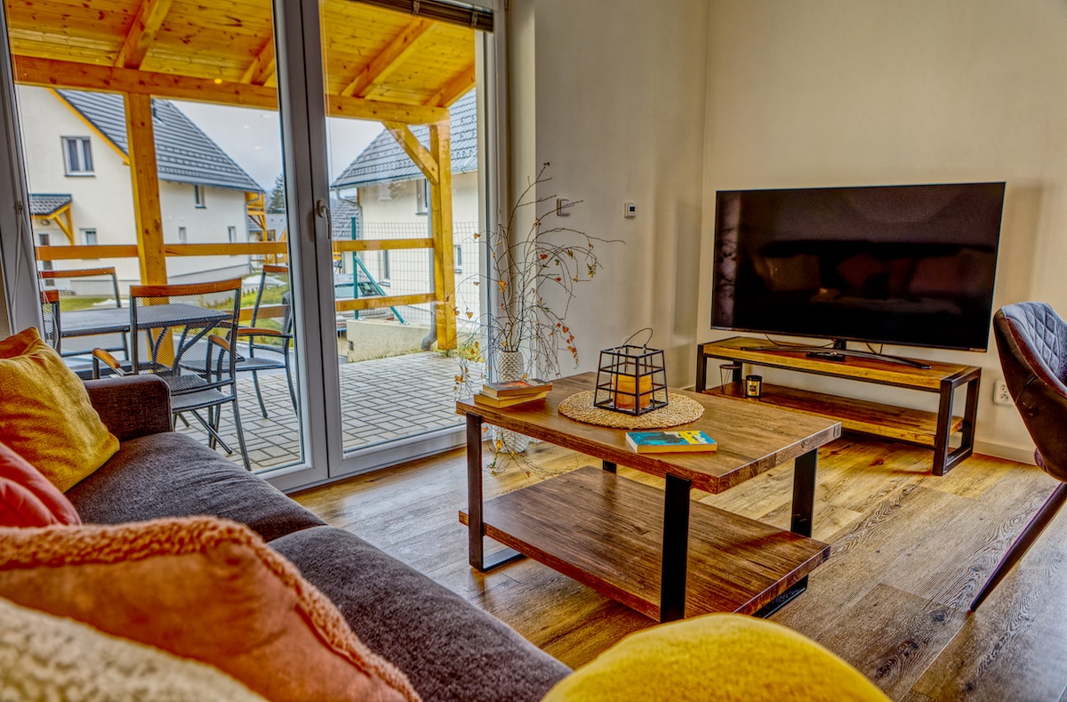 Apartment in the premium resort Lakeside Village on the shores of Lake Lipno in the village of Milná near Frymburk.The modern furnished apartment with all amenities offers three bedrooms. In two of them there is a double bed and in the third bedroom there is a bunk bed. There is also a living room with a kitchenette, a spacious bathroom with a toilet. There is also a large terrace with barbecue.The apartment is located on the ground floor of the main building.