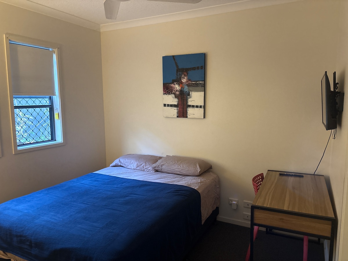 This north Brisbane downstairs apartment has easy access from the quiet inner-city suburban street, surrounded by leafy trees, and air-conditioned. Off-road parking is available. It is a short walk to a lovely coffee shop and the bus stop, close to the shopping village and train station, and 20 minutes drive from the airport. Guests may have complete privacy, with access directed as needed. Otherwise, I and my husband are usually home and guests may be greeted and made welcome if they wish.