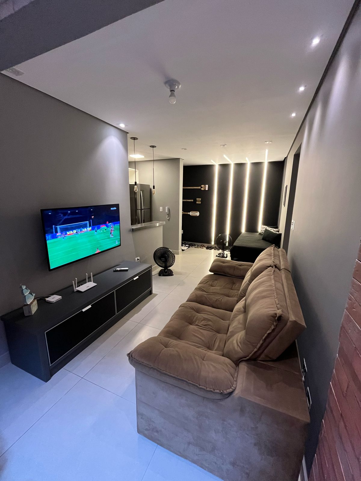 Duplex coverage, private swimming pool and barbecue, wifi, 1 suite with bathtub, king double bed, 1 queen double bed, 1 double queen bed bedroom with bathroom next to it. All rooms smart tv, air cond., ceiling fan! Rooms with led lighting. Bed linen and bath included! 3 parking spaces Atrás Aquário do Guarujá, 1 block of bars, rest. 200m from cove beach, beach view,pool with led! It comfortably accommodates 6 people( and +4 in mattresses). Complete! Beautiful! ☀️🥂