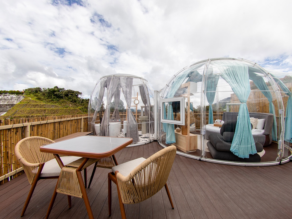 Starlux Dome Experience Enjoy a unique stay in our transparent Starlux Dome, offering privacy with gated access and blackout curtains. Stargaze through the clear dome while relaxing in a hot water bathtub. Your stay includes a buffet dinner and a steamboat and grill meal. Perfect for a romantic or relaxing retreat with a touch of luxury. Book now for an unforgettable glamping experience!