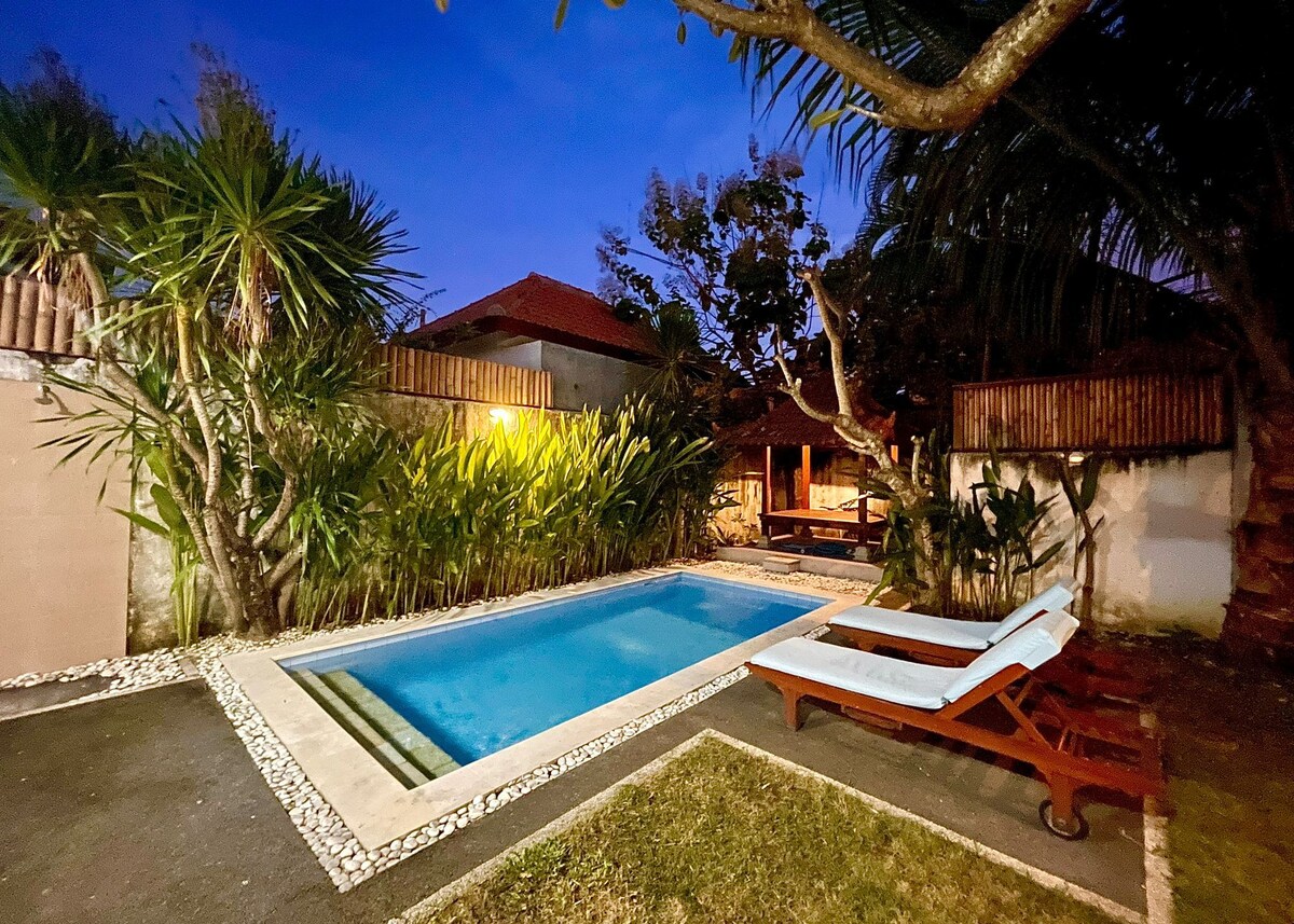 You being able to compare before you book, we will match any price you find from legitimate sources online. Your own slice of paradise awaits in a peaceful corner of Babakan, Canggu. This modern tropical villa features a lush garden and a private pool, offering a serene escape just minutes from the vibrant beaches, cafes, and shops of Batu Bolong and Berawa.