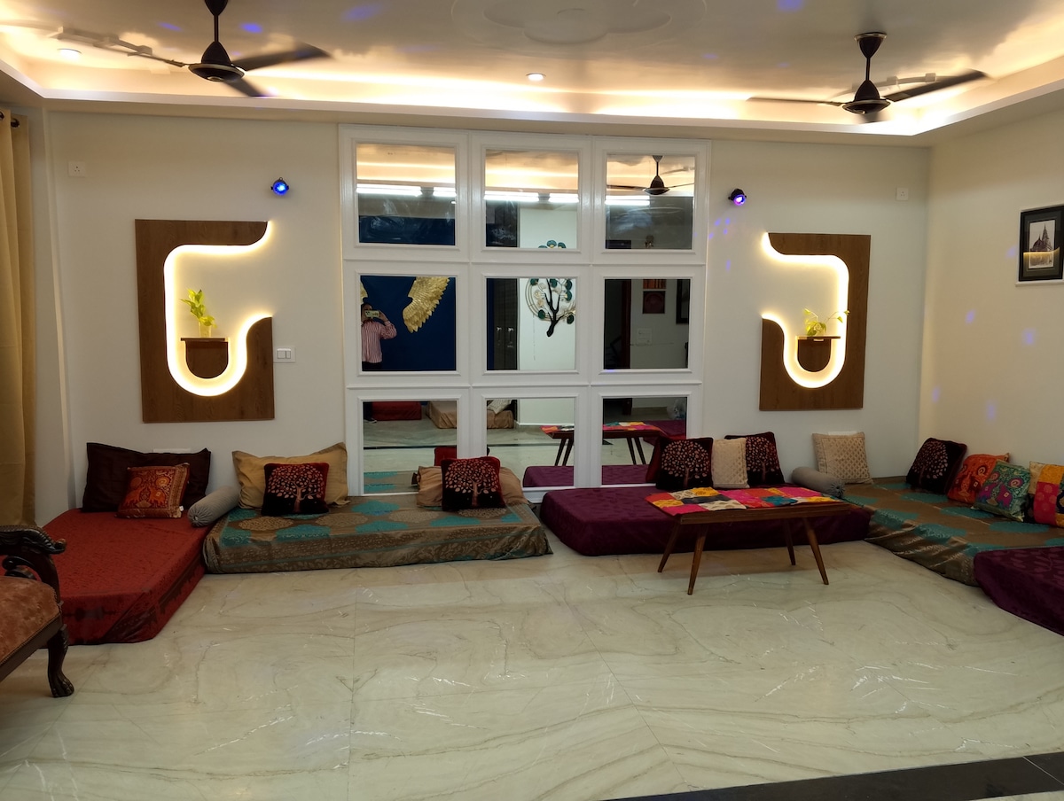 Runaway boutique studio which offers private stay in studio with terrace & ferry light all over the plants with all possible amenities that guests would need for their stay Make your stay a celebration of love & compassion with customised decoration like petal walkway, petal shower, movie night on projector, Candle light dinner setup, Fairy tent setup all in nominalextra charges and turn it into beautiful memories late check-in possible. Inform the host post booking