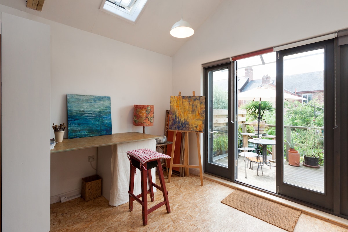 The Painter’s Cabin is an ideal getaway for couples or singles alike. Recently built, cozy, non-smoking space, perfect for a retreat or a calm escape. The Painter’s Cabin, situated on a quiet backroad, offers a relaxed luminous space overlooking a lovely green garden with a view of Totnes castle and the distant Dartmoor hills. No need for a car, this spacious retreat is only a five-minute walk from the town center and the iconic river Dart with its walks to Sharpham and Dartington estates.
