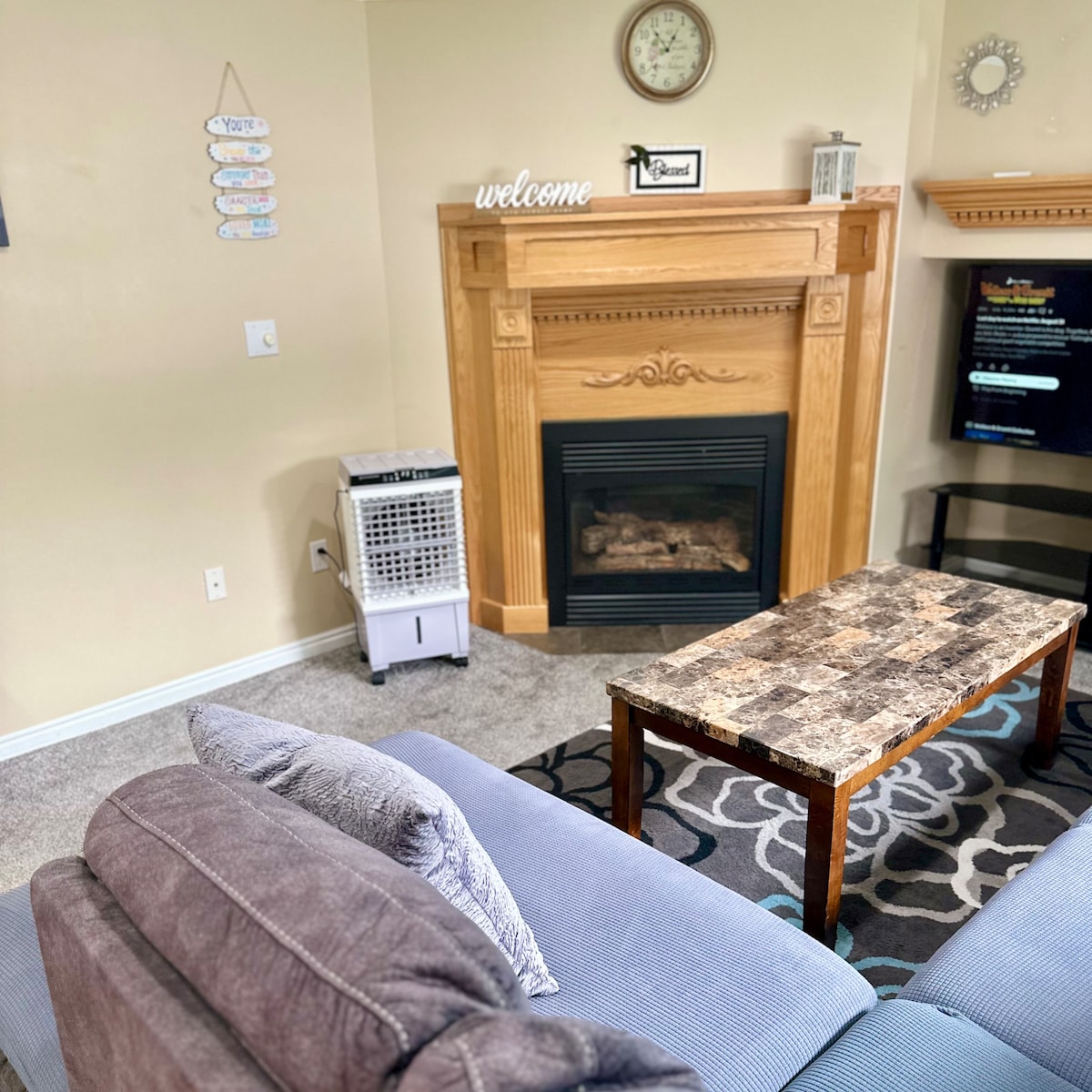 Enjoy a relaxing visit to Utah or a little staycation at this cozy home in peaceful Clearfield. Featuring 2 queen bedrooms and a bathroom with an open concept kitchen and living room. Relax by the firepit in the backyard or enjoy a meal on the back patio. Enjoy coffee at the coffee bar and relax by the fireplace. The area offers plenty of options for hiking and there are several ski areas between a 30-60 minute drive. There are plenty of restaurants and things to do in just a short drive!