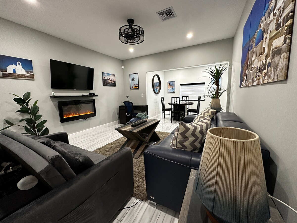 This globally curated, well-appointed Modern Tropical Villa sets a tone between luxury and comfort, with everything needed to enjoy a fantastic business retreat or an amazing tropical getaway for couples. A convenient 12 mins to Palm Beach International Airport, 13 mins to West Palm Beach City Place, 6 mins to Lake Worth Beach, and 5 minutes to downtown Lake Ave for restaurants, bars, and nightlife. Private, stylish, comfortable, and near it all!