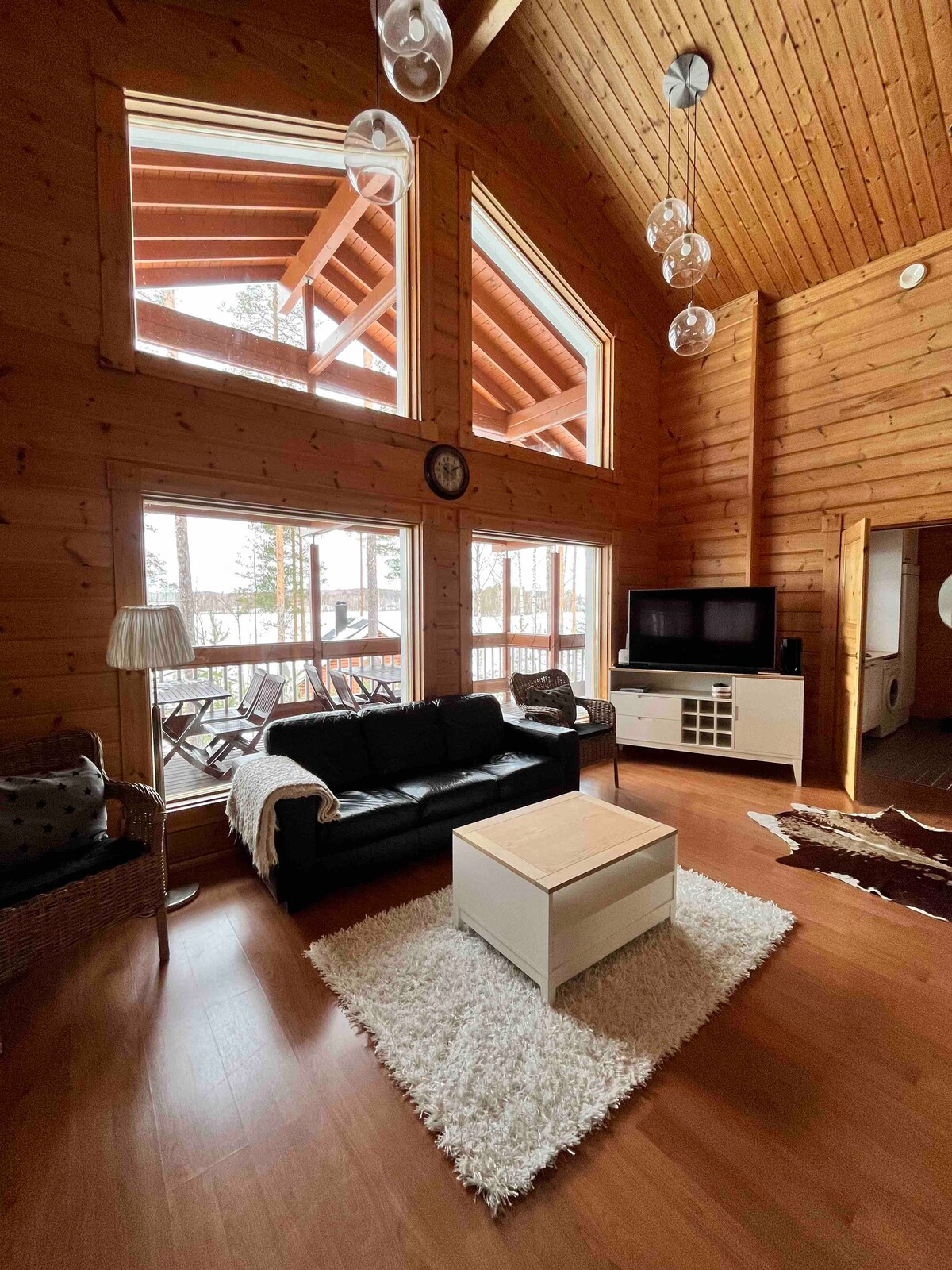 A lovely 66-square-meter log cabin, which has retained the atmosphere of a cabin, although there is electricity and water. The cottage has a large atmospheric fireplace. There are plenty of board games for rainy days. In summer, the best things to do are swimming, rowing, skimming the lake, and watching the sunsets... In winter, you can access snowmobile trails, ski on ice, snowshoe, and you can find sleds, slides, etc. You can also see the northern lights at the cabin. The northern lights are most visible in early autumn and spring.