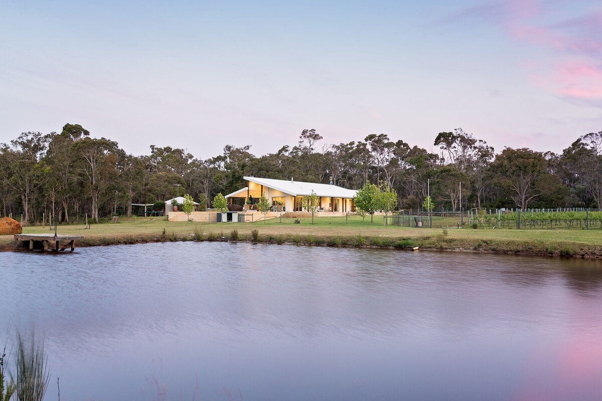 A single, architecturally designed timber cabin, nestled into the trees by the lake, overlooking our certified organic vineyard. Ample amounts of natural light filter through the trees with vineyard & farmland views framed by each window. The stunning waterfall window in the bedroom connects the inside with the out, creating a memorable feature & allowing you to sleep under the stars. Please note the cabin is an adults only retreat.
