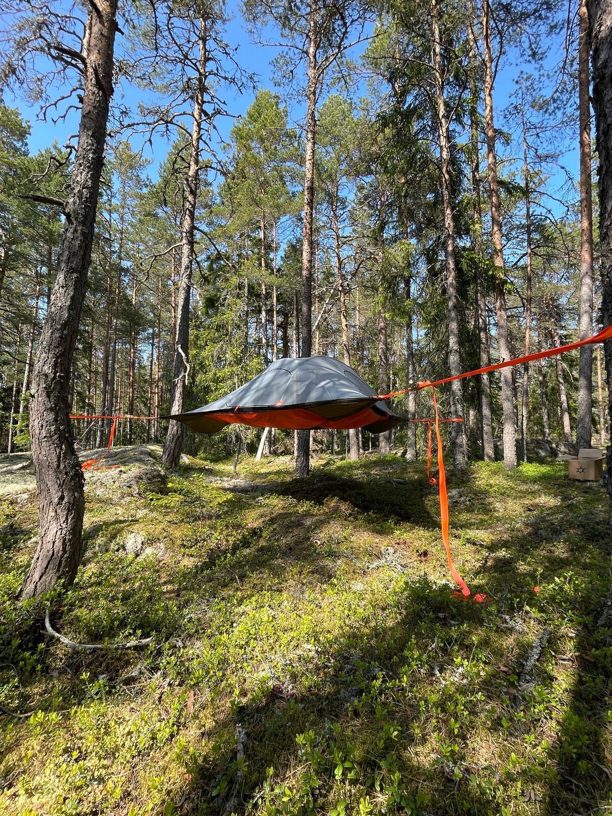 Sleep in the trees! The treetent is situated at Villa Reuter in the archipelago 45 min drive from Turku. You may use the toilet and shower in the Bistrobuilding 20m from the tent. The grill, fishing equipment, an rowingboat, 2 kayaks and bicykles are free to use during your stay. For heating the sauna we charge 50€ If you have your own sleepingbag you get a 10€ discount/person on your accomodation, but remember to tell us this when making the request