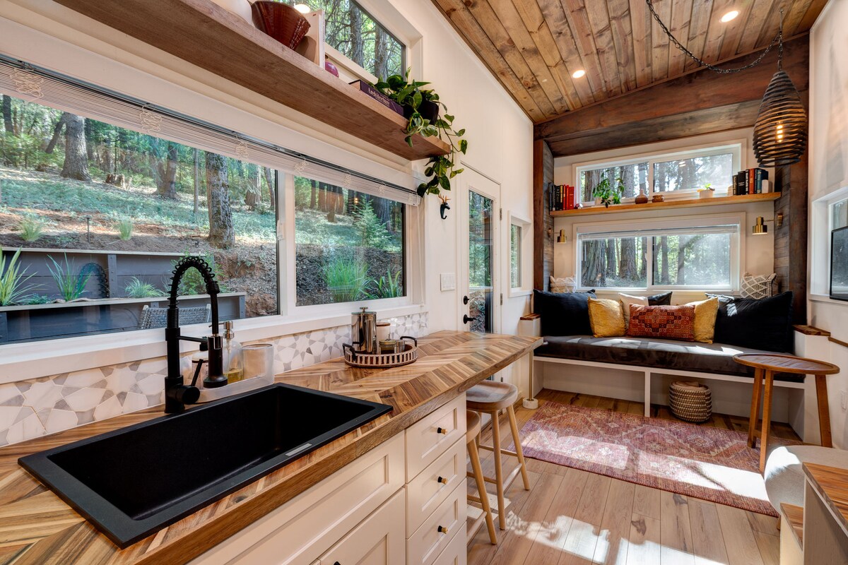 Custom built modern tiny home. Nestled near the woods just 5 minutes from downtown Nevada City and 12 minutes from Yuba River swimming. FAST new WIFI , Works great! Enjoy the outdoors on our private deck by the fire table. Perfect for a relaxing weekend escape. The home has its own private backyard, past the main house on the property.