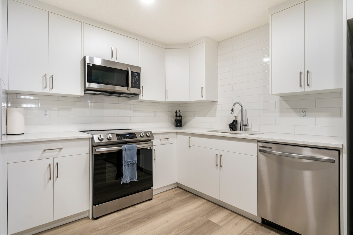 This modern 2-bedroom apartment is a great option for business or pleasure. We are a few minutes drive from the South Health Campus, Real Canadian Superstore, and the World’s biggest YMCA. We provide FREE: ✓ Coffee & Tea ✓ Wifi ✓ Parking ✓ Quality toiletries and soaps ✓ 65" QLED Smart TV: Amazon Prime, Netflix & more ✓ Water & Drinks Other services include: ✓ Self-check-in ✓ Comfortable beds & pillows ✓ Warm duvets ✓ Washer & Dryer ✓ Iron ✓ Toaster ✓ Hairdryer ✓ Microwave oven