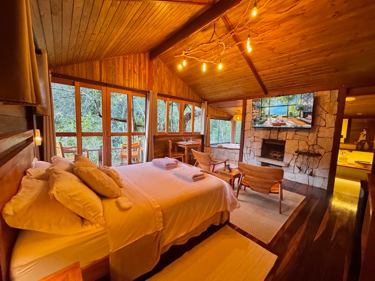 Welcome to Chalés da Matta. We have two exclusive chalets for couples, surrounded by nature and designed for moments for two. Each chalet has a queen-size bed, hot tub, fireplace, equipped kitchen, balcony overlooking the countryside and Starlink Wi-Fi. Ideal for celebrating special dates, relaxing, or simply escaping the routine with comfort, privacy, and charm. Easy access, quiet environment and perfect for renewing your energy.