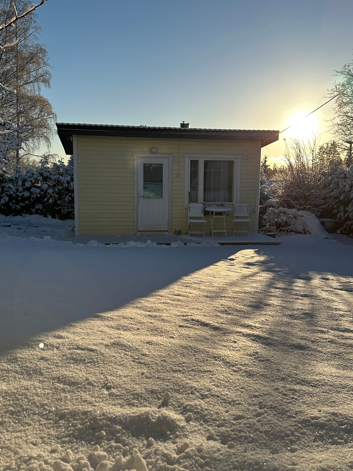 The cottage is located in a quiet residential area in Kaarina Littois. The distance to the center of Turku is 8 km. Bus stop about 700 m. Littoistenjärvi beach is within walking distance (2km). The cottage has a spacious room with beds for two and a refrigerator, as well as a toilet and shower. Enjoy the sun and the birdsong on the cozy terrace. There is a parking space for the car in the yard. The owner's house is located in the courtyard.