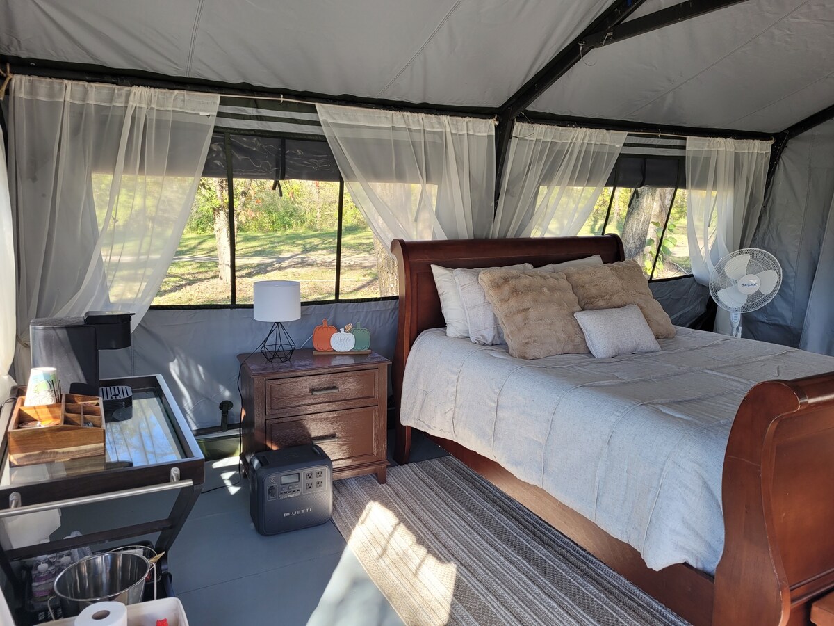 Glamping - Firepit, Carpet, Electric, Frig, Fans