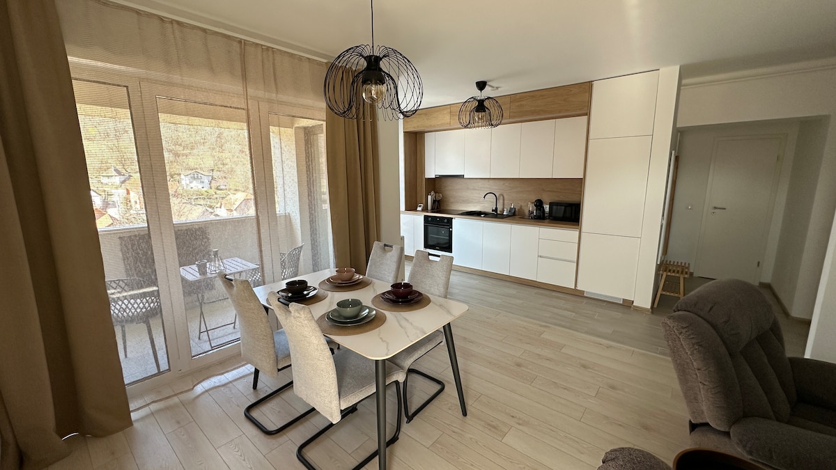 This unique home has a style of its own, a place where every detail counts. The apartment is located in Unirii Park Luxury residential complex, a newly built complex in a very quiet area. The block is 2 minutes from Sevalia Medica clinic and Penny supermarket, 7 minutes from the center and 9 minutes from Mures County Hospital. The place is on the ground floor of the block. Gorgeous view at the forest. Free private parking at the entrance of the block.