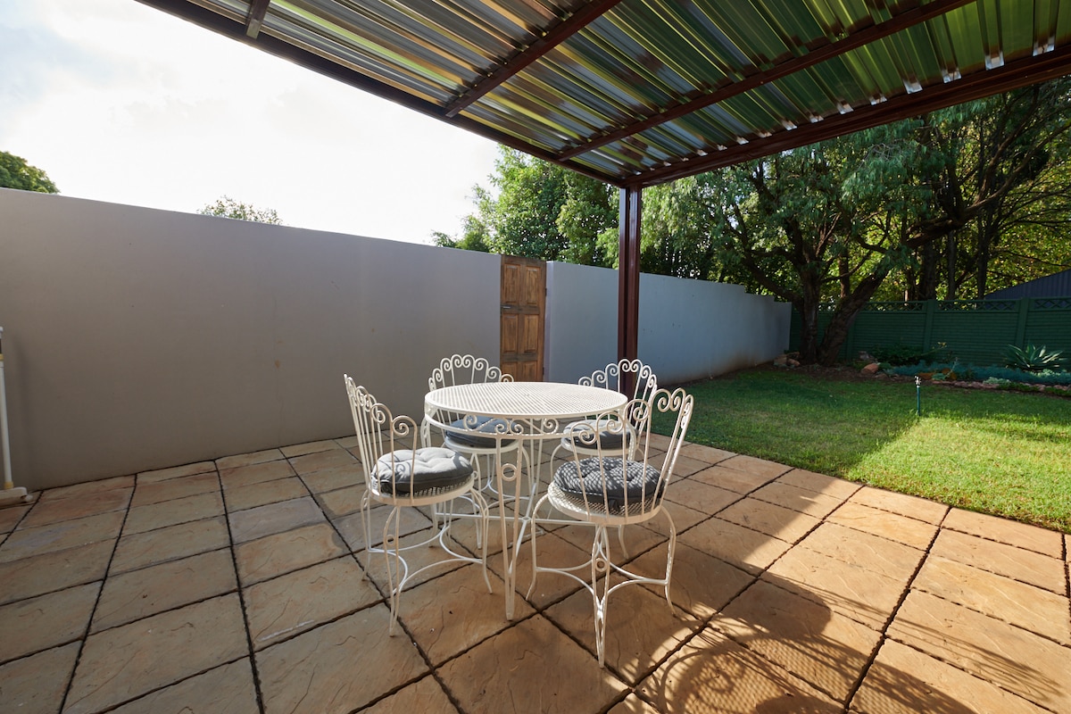 Airy and sunny level accommodation . Plenty of space to relax , while enjoying the highveld weather. Sit and enjoy your morning coffee in a colourful garden , Watching the bird life . New paved area with table and chairs, a braai on request. Please bring your own charcoal. Now with back up power ⚡️and water 💦