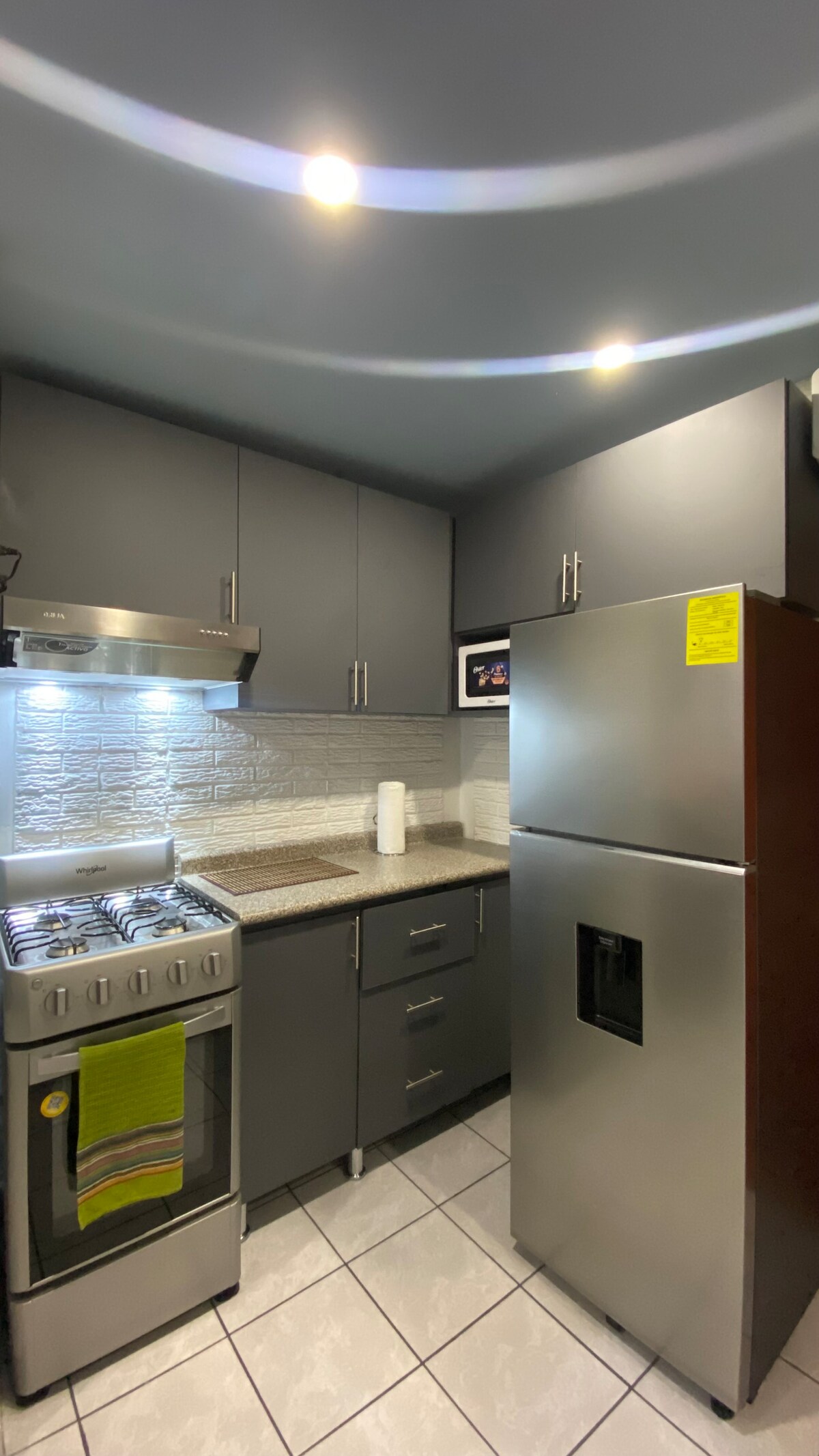 Comfortable PRIVATE mini apartment with 1 bed, located in a central, private, quiet and safe residential area of San Salvador. Private bathroom, A/C in the room, Wi-Fi, Smart TV with Netflix, closet, refrigerator, 1 outdoor parking space, etc. The property is located near Cuscatlán Stadium and 10 minutes from shopping centers such as La Gran Vía, Multiplaza, El Salvador del Mundo, and 5 minutes from Starbucks, restaurants, pharmacies, etc.