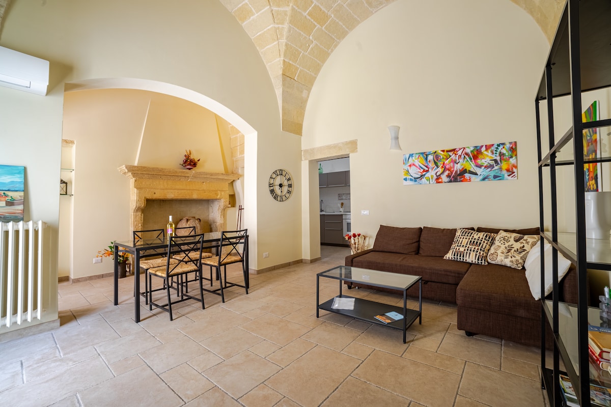 The complex is part of an ancient farmhouse renovated by the architect Luca Zanaroli. The apartment is in the heart of the historical center of Patù, in front of the historic Piazza Indipendenza, a few minutes from the sea and the major historical and cultural centers of interest. We inform our kind customers that there is a fuel gas detector in our facility and it is sanitized and sanitized following the guidelines of the Ministry of Health.