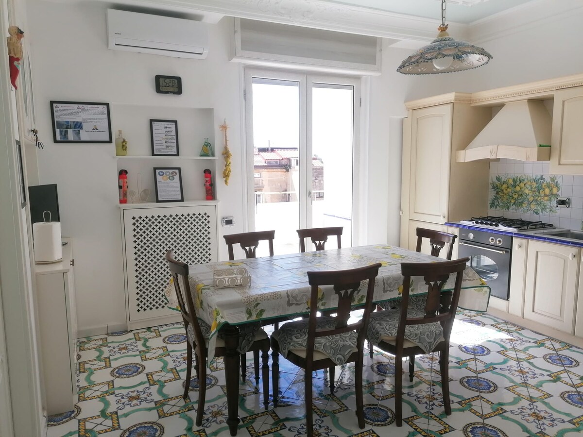 The beautiful apartment was completely renovatedin 2021.The apartment is located on the second floor of an ancient building without elevator. The apartment is tastefully furnished in Mediterranean style,and includes a double bed sitting area, full kitchen marble table and 4 chairs,large wardarobe, 1 television and it is equipped with all the conforts and service, heating and air conditioning,internet wifi.The apartment overlooking the sea with stunning views of the Sorrento Peninsula