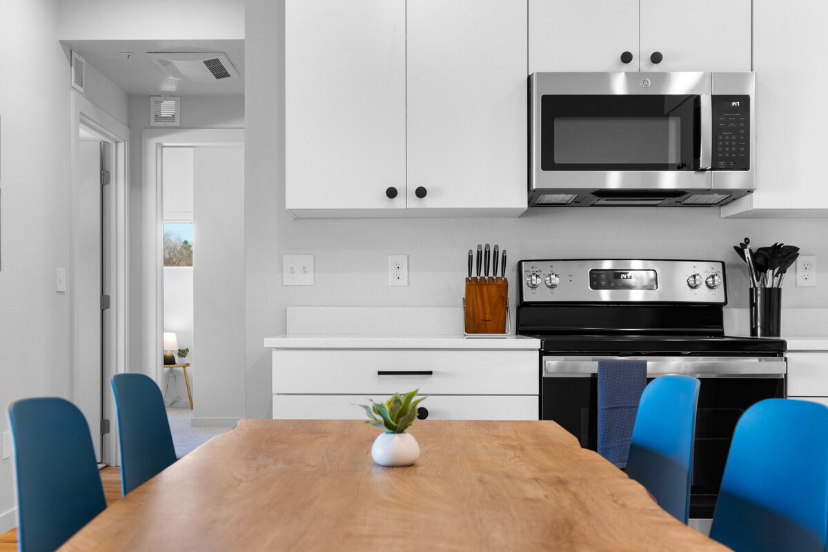 Discover urban luxury in this industrial-chic apartment. Secure gated parking for 1 car, elevator access, and a gym just steps away. Relax on the private balcony with view of the train bridge, or enjoy stylish interiors. Two spacious bedrooms feature walk-in closets, offering comfort and convenience. Sleep soundly on king and queen beds plus a queen pull-out sofa featuring a 4” memory foam mattress. Laundry facilities are located in-unit. Brewery and restaurant right out the front door