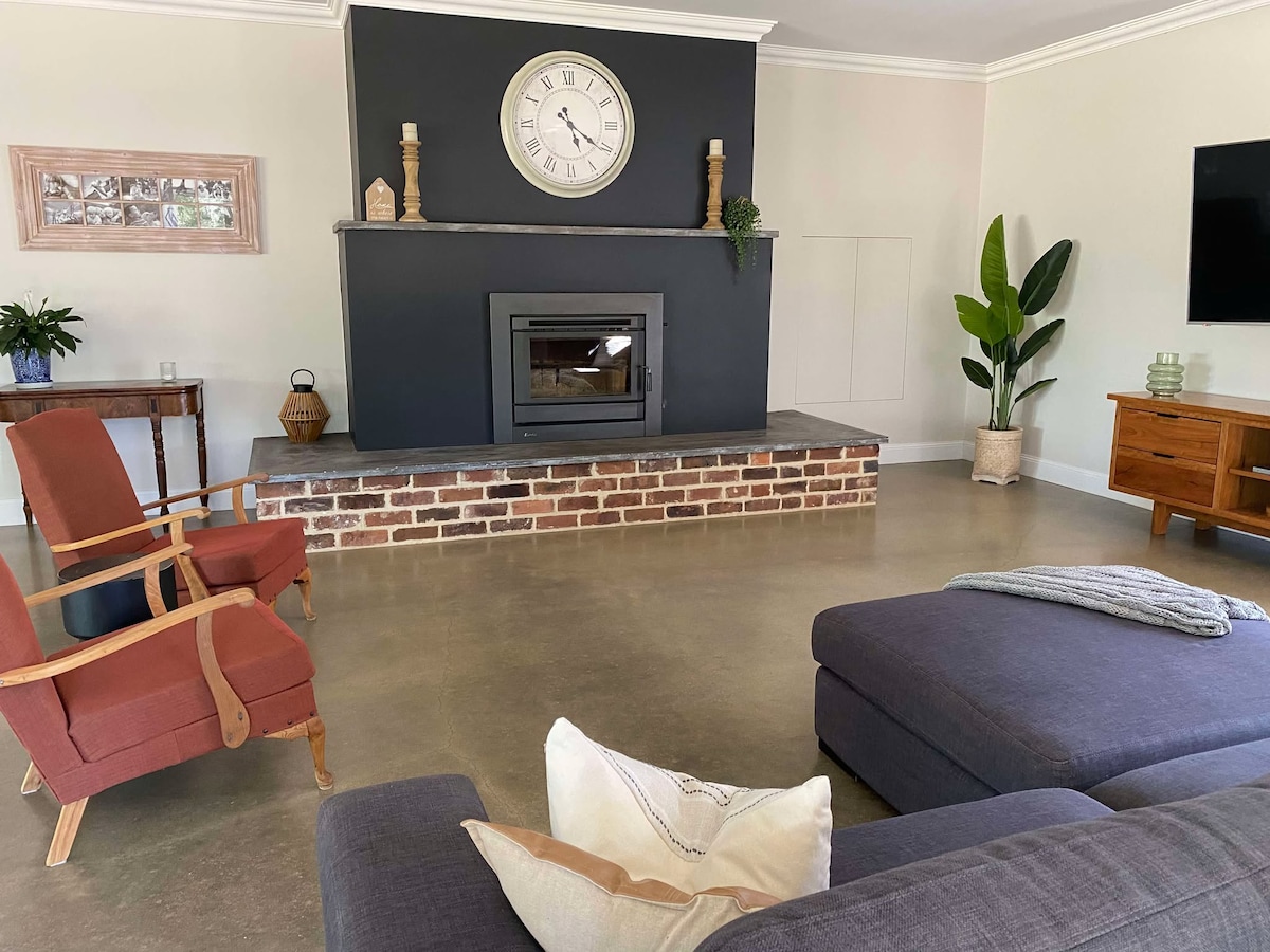 This lovely 3 bedroom home has been recently renovated and is fully furnished. For your comfort we provide bedding, a coffee machine, free hi-speed wi-fi and Bluetooth speaker. The house has a fully fenced back yard and is pet friendly. The study has a second TV and couch, great for kids viewing. The house has a large covered veranda around 3 sides of the house. The back veranda has seating and a BBQ, the front has comfy outdoor furniture and overlooks the country hills.