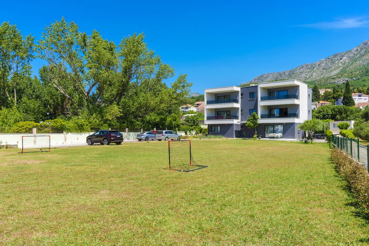The position of our apartments stands out from the others because in addition to Free parking for its guests and provides a huge green meadow where family can play completely carefree.Beautiful sandy beach is only 300m away, which takes 3 minutes easy walk without any stairs. A shopping center with anything you may need is just below our property. We have large selection of restaurants nearby, from top local to cosy. The bus station connecting Srebreno with the Old Town is only 300m away.