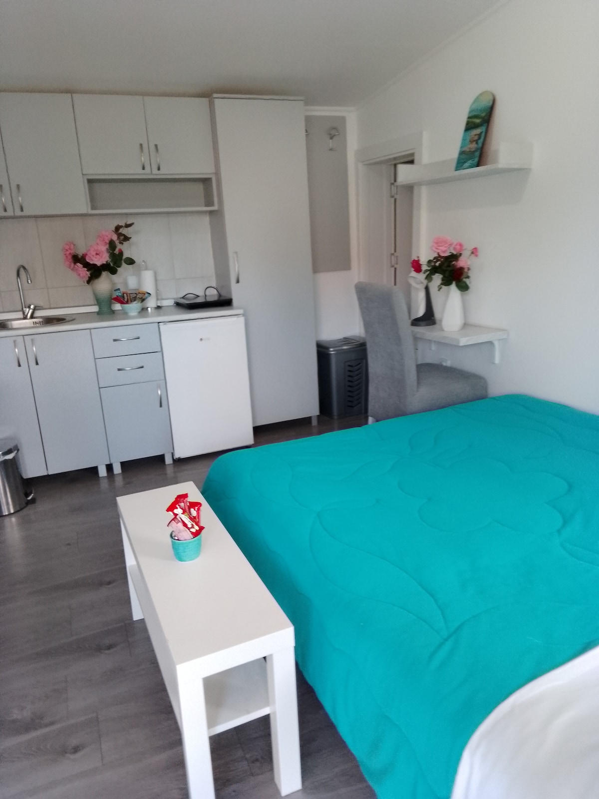 Smestajna jedinica je moderna,komforna sa dve spavace sobe, dnevnim boravkom kuhinjom,kupatilom i terasom. Nalazi se preko puta gradske plaze, na nekoliko minuta od centra grada i vecine zbivanja. Takodje,u blizini se nalazi arheoloski lokalitet Carska palata,muzej,pozoriste kao i gradski bazen.