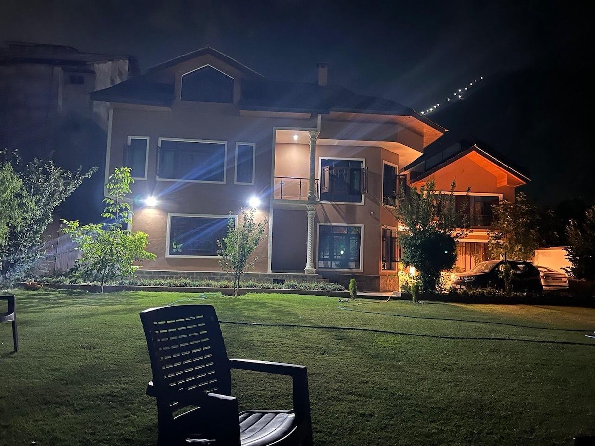 Spacious guest house in Kashmir featuring 4 king-size bedrooms and a luxurious suite, each with private bathroom, smart TV, Wi-Fi, and coffee maker. Guests can book the entire home for exclusive use or choose individual rooms for a cozy stay. Relax in the shared lounge, dining area, or serene garden, perfect for enjoying fresh mountain air. Ideal for families, groups, or solo travelers seeking comfort, convenience, and a peaceful retreat in a stunning natural setting.